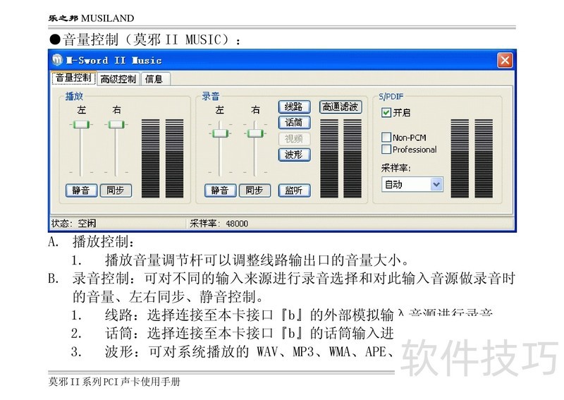 本文为乐之邦莫邪II系列声卡使用手册,详述产品操作步骤与常见问题处理方法。