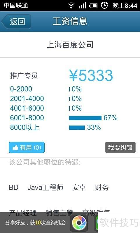 6、 这款软件最实用的功能是按职位查询薪资,能清楚了解当前岗位的市场薪酬水平。