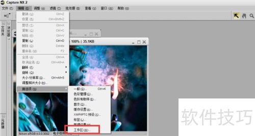 3、 接着点击首选项中的工作区选项。