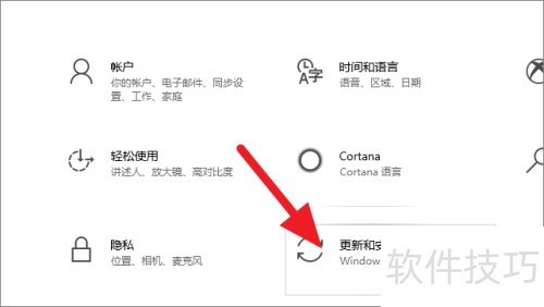 4、 进入设置,点击更新和安全选项。