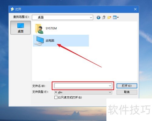 6、 选择非系统分区的保存位置和文件名,点击打开即可返回。
