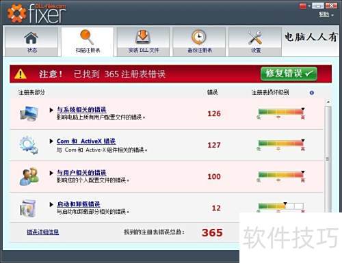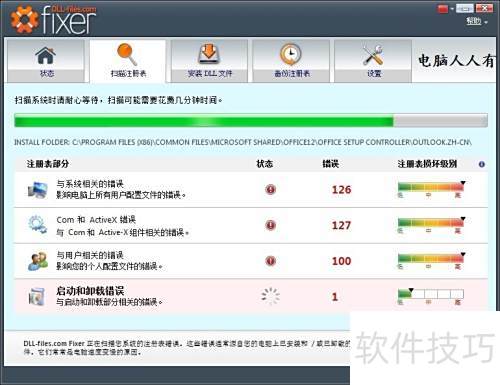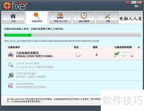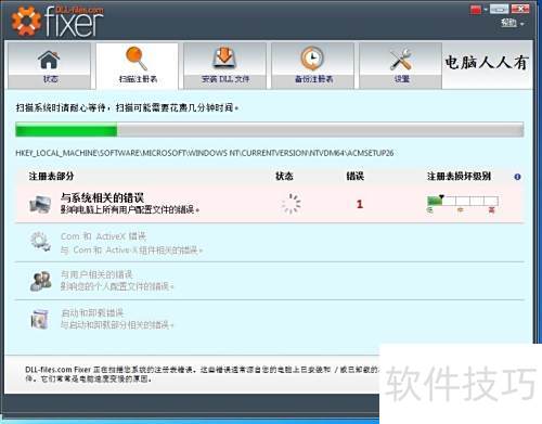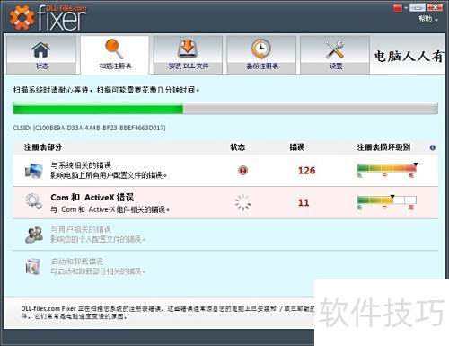 4、 后续将扫描Com与ActiveX错误,错误越多,注册表损坏越严重。