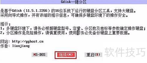 5、 在Gdisk一键分区界面中,按回车选择继续(N)即可。
