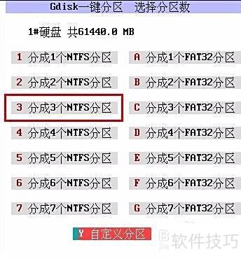 7、 用户可在分区数选择界面手动自定义分区,或直接选取预设的分区数量进行操作。