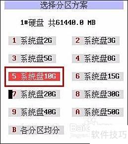 8、 在分区方案界面选定系统盘容量后,按回车键进入下一步操作。