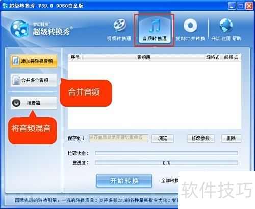 珍藏在CD中的经典歌曲承载着许多美好回忆,若想随时随地聆听,可将这些音乐转换为MP3、WMA、AAC、WAV等通用格式,方便导入手机或播放器中随时欣赏。通过音频转换工具,不仅能完整提取整张CD的曲目,还能精准剪辑喜欢的段落,例如将歌曲高潮部分设为个性铃声,或对多段音频进行拼接、混音,打造专属音乐作品。实现这一过程,选择一款高效稳定的转换软件尤为关键。国内广受认可的超级转换秀便是理想之选,它支持批量提取CD音轨,操作简便,转换速度快,且能保持高保真音质,让经典旋律在数字设备中焕发新生。
