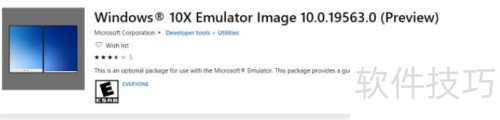 4、 在微软商店中搜索Windows 10X 模拟器镜像,找到后点击获取或安装即可下载并安装该工具,方便在本地运行相关测试环境。
