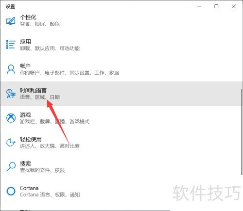 2、 打开Windows设置,选择时间和语言,进入区域选项进行配置。