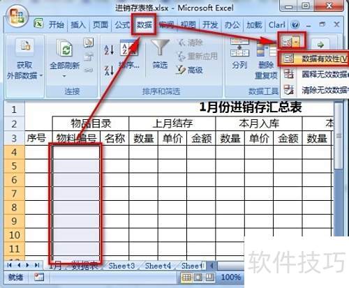 1、 新建工作表并命名为1月,参照图示设置表头内容。