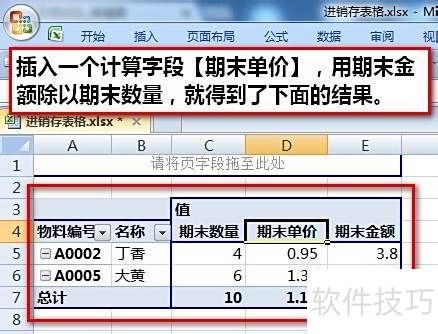 26、 添加计算字段,通过除以得出结存平均单价。后续新增数据时,只需更新透视表数据源并刷新即可。