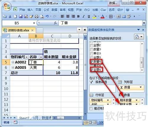 27、 数据透视表还能统计当月入库量、出库量及总金额。