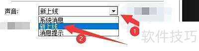 6、 在声音选择区域,点击声音按钮,于弹出选项中选取所需的声音模式,例如选择新上线。