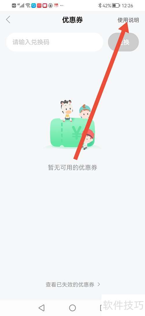 4、 进入优惠券页面,查看使用说明。