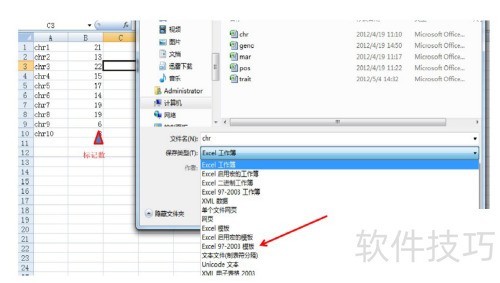 6、 Excel与txt文件相互转换方法(chr),具体操作见下图。