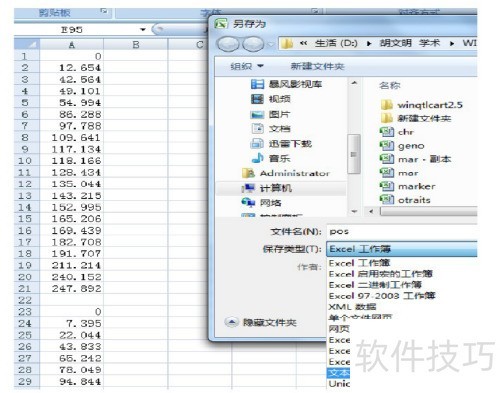 8、 将Excel文件转换为txt格式(pos),具体操作所示。