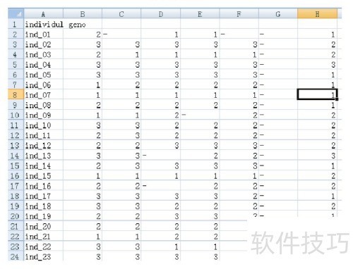 9、 将Excel文件转换为txt格式(geno),转换结果所示。