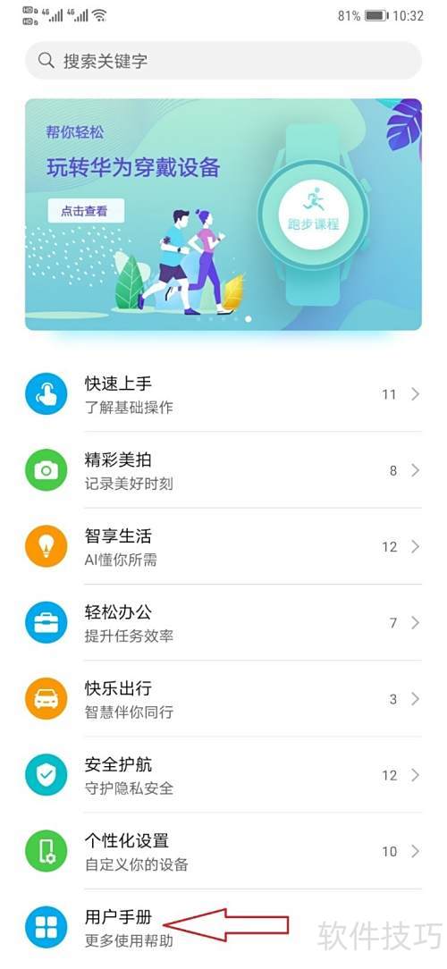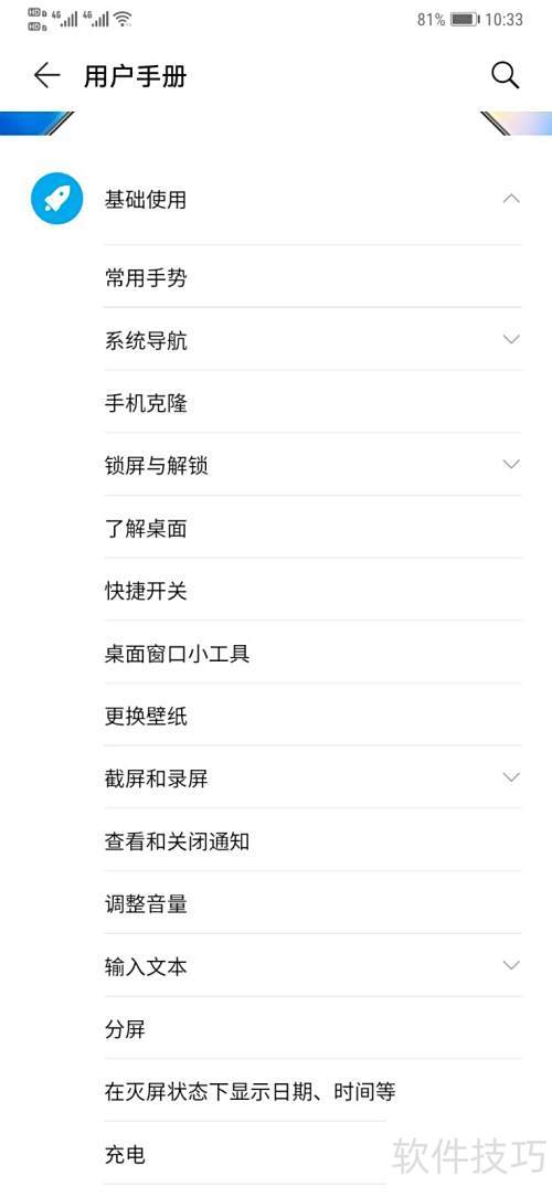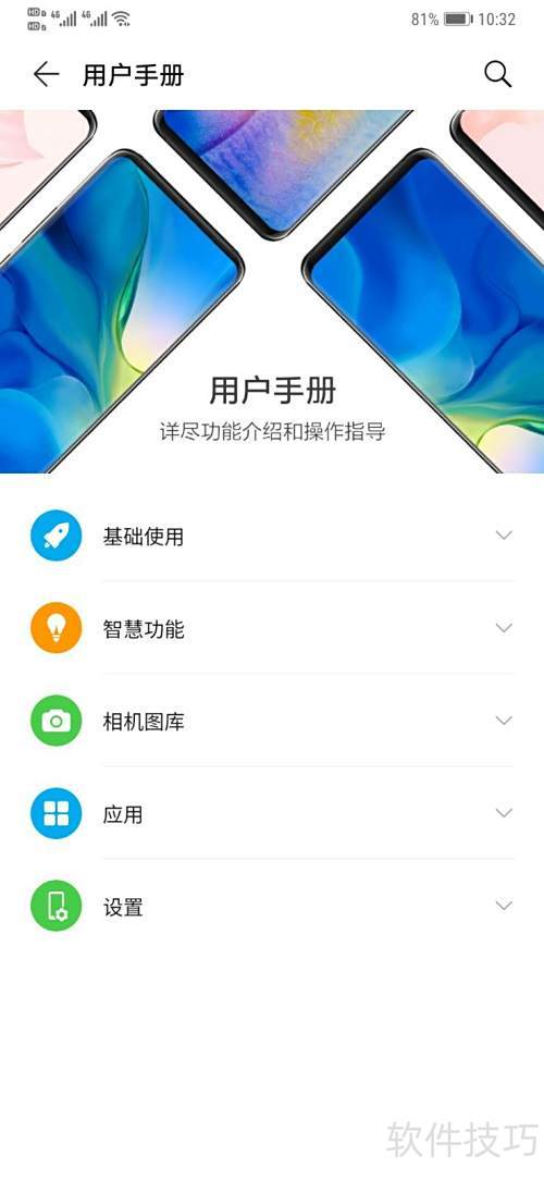 3、 选择用户手册选项,内含多项基础操作指南,可根据个人需求查阅学习。