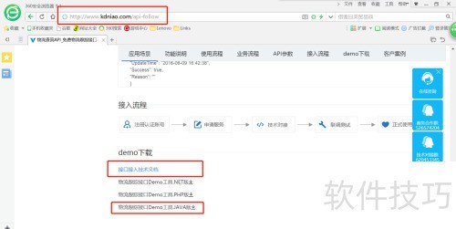6、 账号等准备工作完成后,可直接下载技术文档开始对接。该平台官网未提供具体接口的演示代码,但所有接口在数据格式、加密方式及请求方法上保持一致。因此,可先下载其他接口的示例程序,比如物流跟踪接口的demo,再根据当前接口的技术文档调整请求参数和指令即可,其余部分无需修改,可直接复用,节省开发时间。