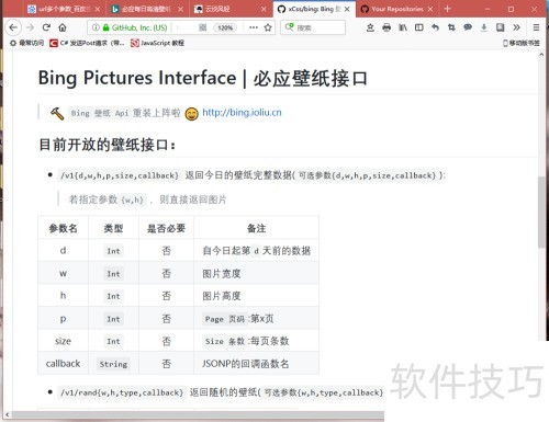 2、 Bing壁纸的说明与API接口位于GitHub,可从其官方网页直接访问链接获取相关信息。