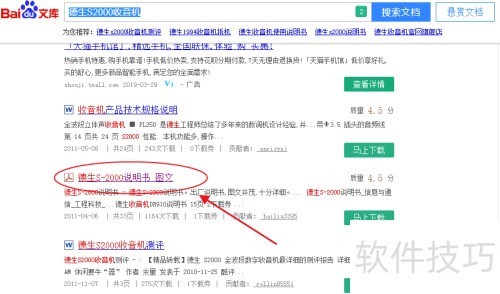 1、 打开百度文库页面,在搜索栏输入德生S2000收音机,查找并定位到图中红线标注的位置。