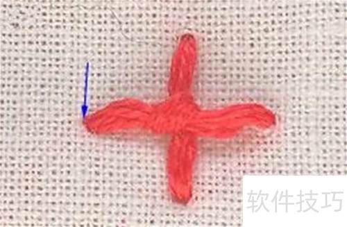 四腿结是在十字交叉绣中央打结,四周延伸出四条线,形似四条腿,因此得名。