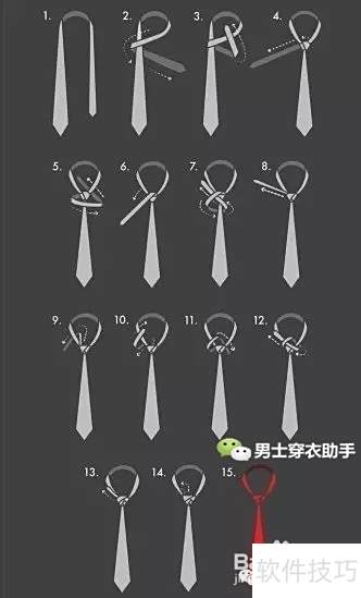 13、 关键:打领带时需注意步骤,确保背面朝前。