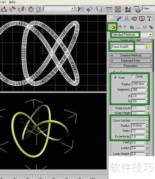 1、 在顶视图中创建指定参数的环面结,随后点击Z键以恢复最佳显示比例。