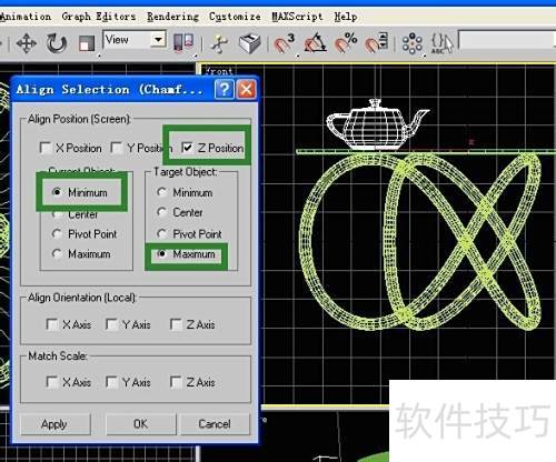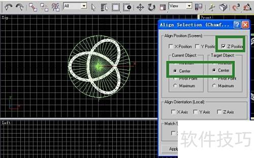 3、 选中环面结后按Alt+A,在桌面点击并按提示设置,确保在Z轴方向实现居中对齐。