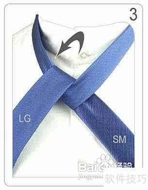 2、 将大端从内侧向上翻折,穿过领口三角区。