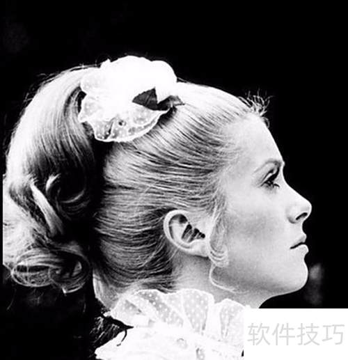 5、 1968年,法国女演员凯瑟琳·德纳芙以优雅马尾搭配高领白衬衫,尽显法式上流社会的端庄与高贵气质,简约中透出经典淑女风范。