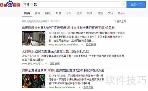 1、 在百度搜索河神下载,查找相关结果并浏览。
