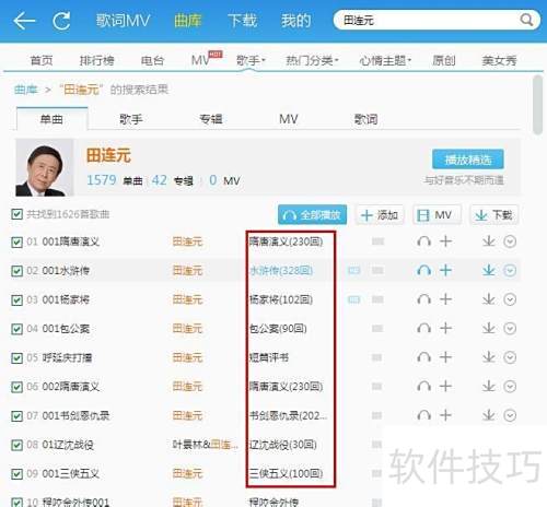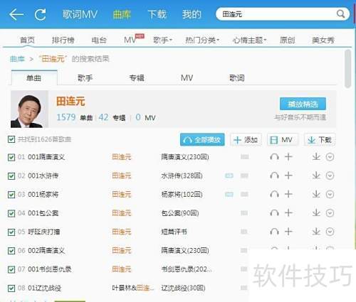 5、 点击搜索即可找到田连元大量评书全集资源。