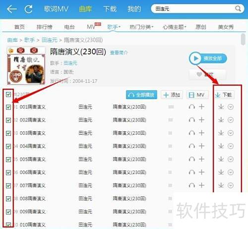 2、 现在开始下载评书全集,需提前准备好支持批量下载的音乐工具。