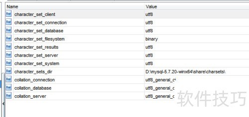 8、 此时展示数据库CHARSET系统变量的详细信息