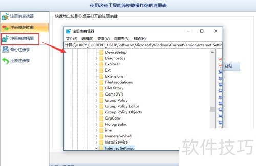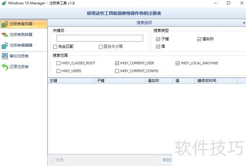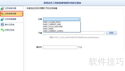 5、 点击注册表跳转器,选择主键与子键即可迅速定位至相应注册表界面。