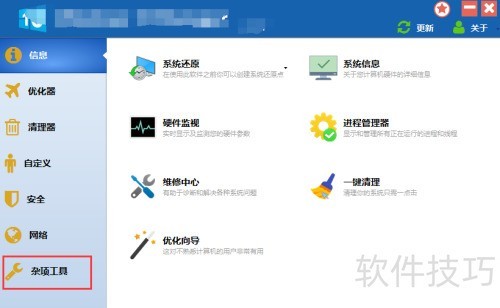 2、 打开软件后,点击左侧导航中的杂项工具选项。