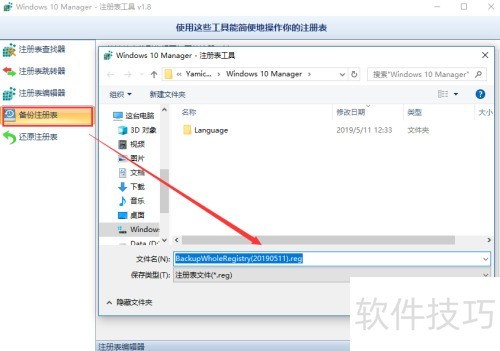 7、 点击备份注册表可快速完整保存系统注册表信息