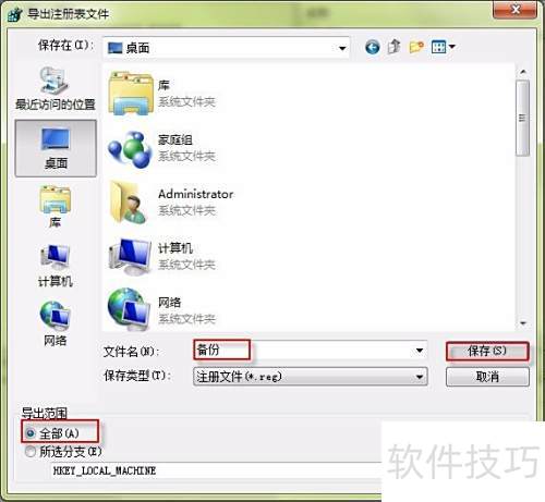3、 选定保存路径并命名,点击保存按钮,即可完成注册表备份。