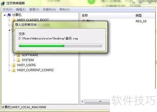 6、 此时系统正导入注册表备份,请勿进行其他操作,以免影响进程。