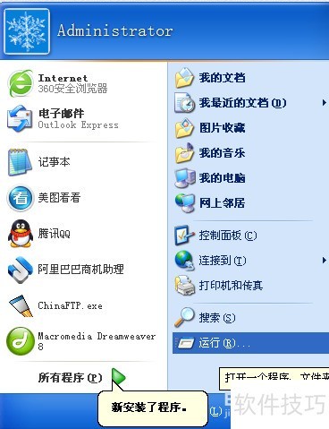 2、 点击开始,选择并打开运行功能。