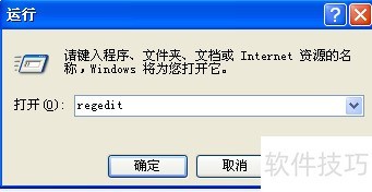 3、 运行后,在输入框中键入regedit并确认。