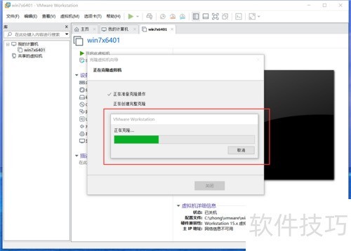 6、 克隆虚拟机所需时间取决于硬盘大小,请耐心等候完成。