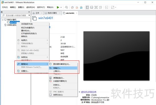 2、 右键选中虚拟机,选择管理中的克隆选项,启动克隆向导即可。