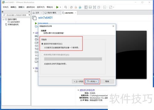 3、 选择克隆源,通常为虚拟机当前状态,确认后点击下一步继续操作。