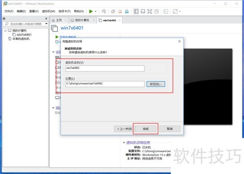 5、 输入新虚拟机名称及存储路径,确认后点击完成即可。