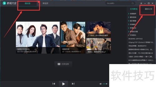 2、 打开影视大全进入播放界面后,右侧即可看到播放记录的选项。