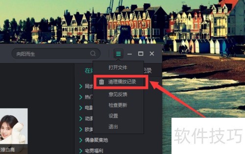 7、 在菜单窗口中选择清理播放记录功能即可。