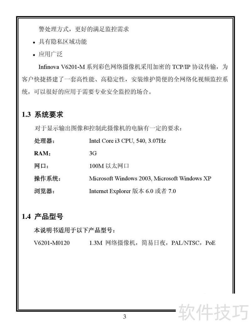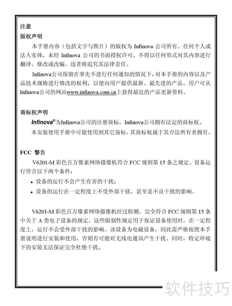 本文是Infinova V6201-M系列彩色百万像素网络摄像机使用说明,详细讲解产品操作步骤及常见问题的处理方法,帮助用户正确使用设备并快速排除故障。