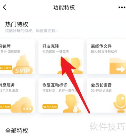 6、 进入热门特权,点击好友克隆功能。