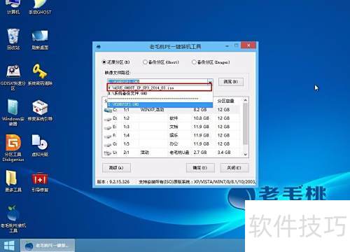 2、 启动老毛桃PE后,装机工具将自动运行,点击映像路径下拉框,选择华硕XP系统安装包即可,操作所示。
